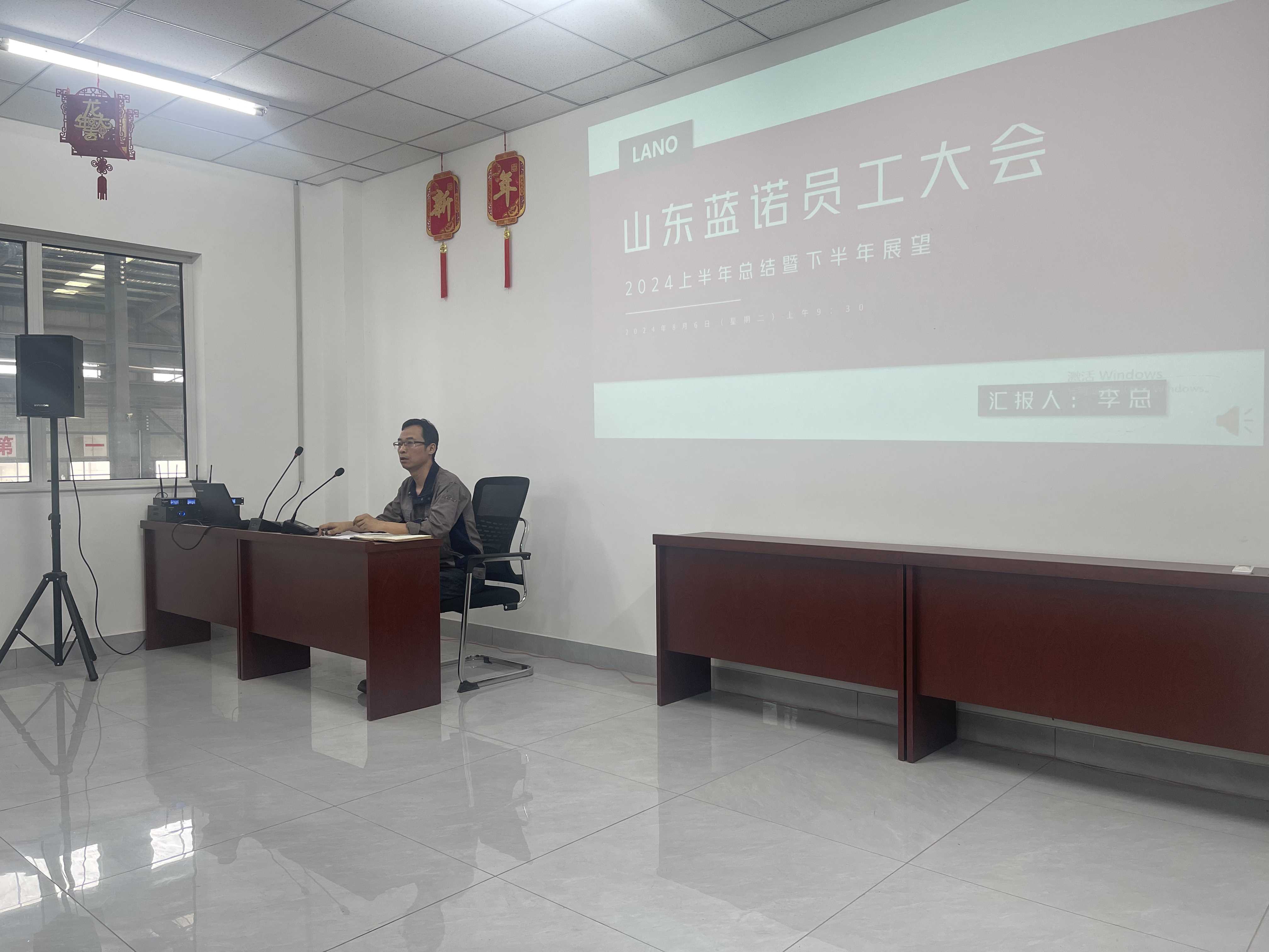2024年8月6日星期二上午9:00,召开新厂完建后第一次员工大会,2024上半年总结暨下半年展望,汇报人李贤波、张衡、王海峰。