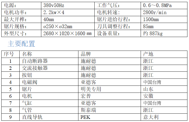 设备特点